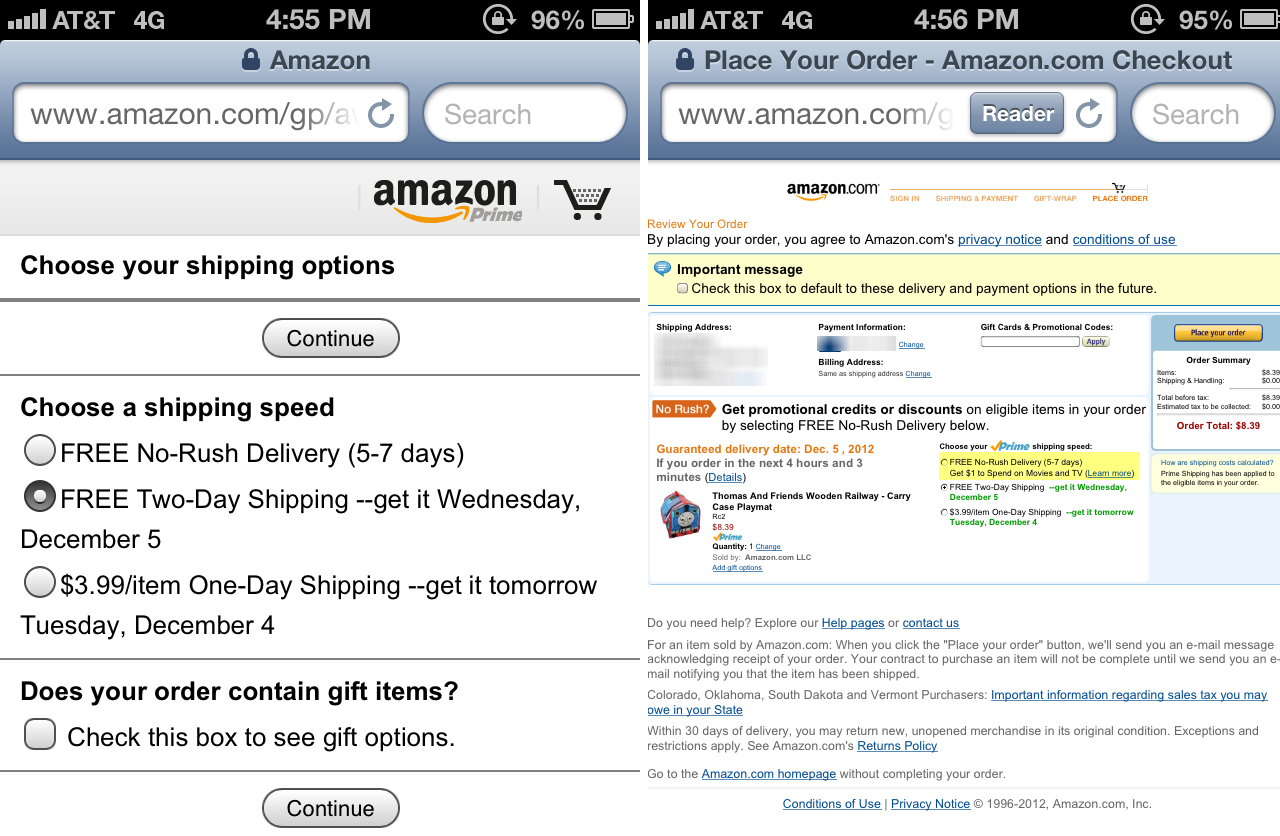 Personally, this year was the first in a dozen years that I did not venture out at an unearthly early morning hour on Black Friday. In keeping with Black Friday madness, I had been waking up earlier each year to get my hands on door busters from various retailers. But this year, I did all my holiday shopping online (don’t get my wife started on just how much), and just wrapped it up last night. Here are 5 User Experience takeaways for online retailers based on about a month of online shopping using a phone, tablet and a PC, with over fifty orders placed at over a dozen retailers: